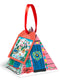 PUZZLE ORNAMENT – The Alpine Cottage 130 Piece Puzzle Ornament from Galison features a brightly colored mini pyramid-shaped ornament, festooned with Christmas Trees, ornaments and lights in Christmas brights. The box includes a tag with the full puzzle image for reference.